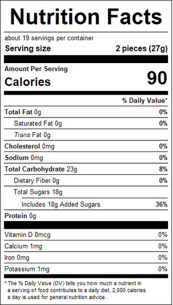 Assorted Fruit Slices are sanded with sugar and come in cherry, orange, lime and lemon flavors. These fruity treats make for a sweet candy "fruit salad."