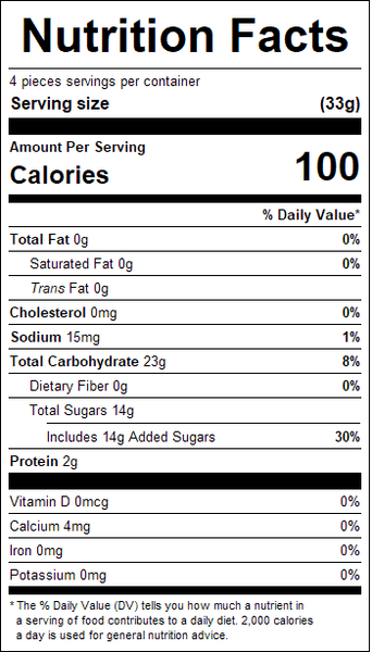 "ingredients": "Corn Syrup (From Corn), Sugar (From Beets), Water, Gelatin, Citric Acid, Natural And Artificial Flavors, Pectin (Derived From Fruit), Vegetable Oil (Coconut, Canola) And Carnauba Leaf Wax (To Prevent Sticking), Fd&C Yellow #5, Fd&C Red #40, Fd&C Yellow #6, Fd&C Blue #1<br /><br />* Yellow #5 - E102, Red #40 - E129, Yellow #6 - E110, & Blue #1 - E133<br />**Coconut Oil Is Highly Refined And Is Not Considered An Allergen.<br /><br />Product Is Free Of The Top 8 Allergens: Milk, Soy, Wheat, Egg, Peanuts, Tree Nuts, Fish, And Shellfish",