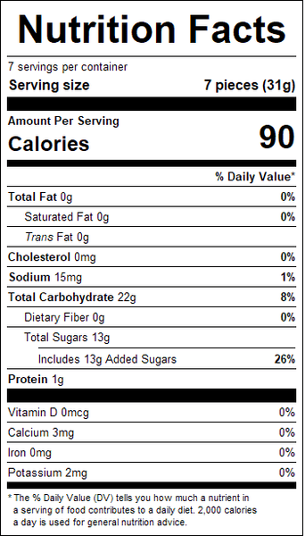 "ingredients": "Assorted Gummi Worms (corn syrup, sugar, water, gelatin, citric acid, natural and artificial flavors, pectin, vegetable oil [coconut, canola] and carnauba leaf wax [to prevent sticking], FD&C Red #40, FD&C Yellow #5, FD&C Yellow #6, FD&C Blue #1).<br />Processed on equipment that also processes: Crustacean Shellfish, Egg, Fish, Milk, Peanut, Sesame, Soy, Tree Nuts (Almond, Brazil Nut, Cashew, Coconut, Filbert (Hazelnut), Macadamia Nut, Pecan, Pine Nut, Pistachio, Walnut) and Wheat.",