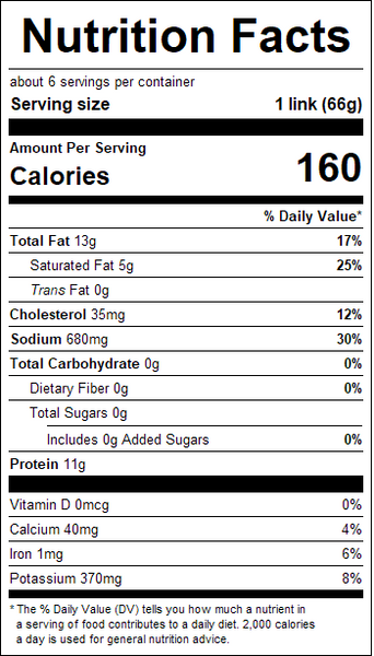 "ingredients": "Pork, Beef, Bacon (cured with: water, contains less than 2% of salt, sodium phosphate, sodium erythorbate, sodium nitrite, may also contain less than 2% of sugar, brown sugar), Water, Pasteurized Process Cheddar Cheese (cheddar cheese [pasteurized cultured milk, salt, enzymes], water, cream, sodium phosphate, salt, vegetable color [annatto and paprika extract blend], enzymes), Powdered Cellulose (to prevent caking), Potassium Sorbate and Natamycin (preservatives), Salt, Contains less than 2% of Potassium Lactate, Sodium Phosphate, Dextrose, Spices, Sodium Diacetate, Sodium Erythorbate, Paprika, Oleo Resin of Paprika, Sodium Nitrite, Collagen Casing.Contains milk.",