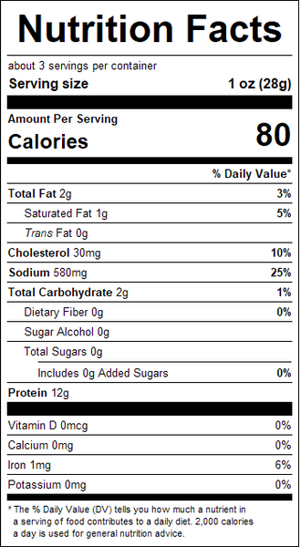 Gold Rush Barbecue Beef Jerky is an excellent Low Fat, Low Carb source of High Protein. A 1 oz. stick contains less than 100 calories with only 2g of carbohydrates and it tasted great!