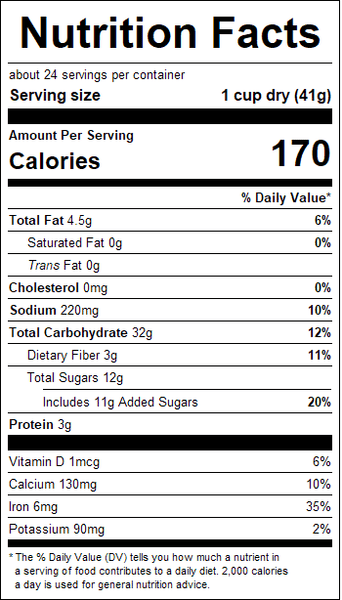"ingredients": "Whole white wheat flour, sugar, rice flour, canola oil, fructose, dextrose, malt- odextrin, salt, calcium carbonate, cinnamon, trisodium phosphate, vitamin C, (sodium ascorbate), color (caramel, annatto extract), soy lecithin, natural flavor, vitamin A (palmitate), iron (ferrous fumarate), niacinamide,vitamin B1(thiamine mononitrate), vitamin B6 (pyridoxine hydrochloride), vitamin D (cholecalciferol), vitamin B2 (riboflavin), folic acid. BHT added to packaging to help preserve freshness. Contains wheat and soy.<br /><br />Made with Bioengineered Ingredient(s).",