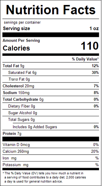 "ingredients": "Pasteurized milk, salt, carolina raper flakes, microbial coagulant, cheese cultures, beta-carotine.Contains Milk",