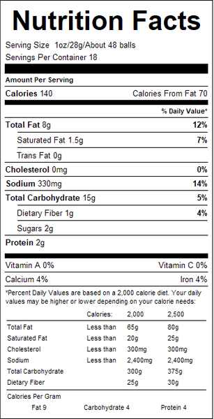 Cheese Balls are bite sized light and crunchy snacks full of cheddar cheese flavor. Try popping a couple of these cheesy treats into your mouth and discover why they've been a favorite snack food for years!