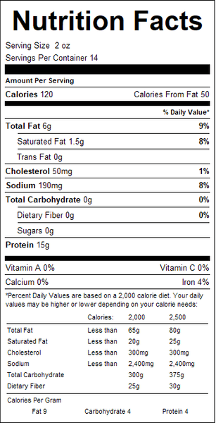 "ingredients": "Chicken, Salt, Pepper.",