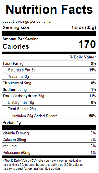"ingredients": "Sugar, Water, Walnuts, Butter, Corn Syrup, Palm OIl, Cocoa, Chocolate Liquor, Brown Sugar, Sorbitol, Nonfat Milk, Cream, Salt, Natural and Artificial Flavors, Potassium Sorbate.",