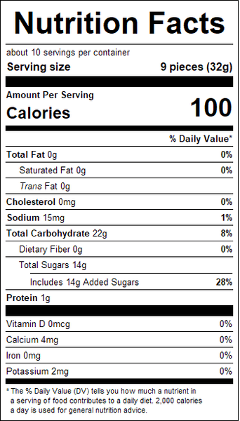 "ingredients": "Strawberry Banana Gummi Bears (corn syrup, sugar, water, gelatin, citric acid, natural and artificial flavors, pectin, vegetable oil [coconut, canola] and carnauba leaf wax (to prevent sticking), titanium dioxide [color], FD&C red #40, FD&C yellow #5, FD&C blue #1).<br />Processed on equipment that also processes: Crustacean Shellfish, Egg, Fish, Milk, Peanut, Sesame, Soy, Tree Nuts (Almond, Brazil Nut, Cashew, Coconut, Filbert (Hazelnut), Macadamia Nut, Pecan, Pine Nut, Pistachio, Walnut) and Wheat.",