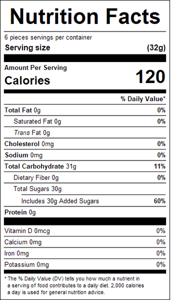 "ingredients": "Cane Sugar, Invert Sugar, Oil Of Peppermint, Red 40, Red 40 Lake.",