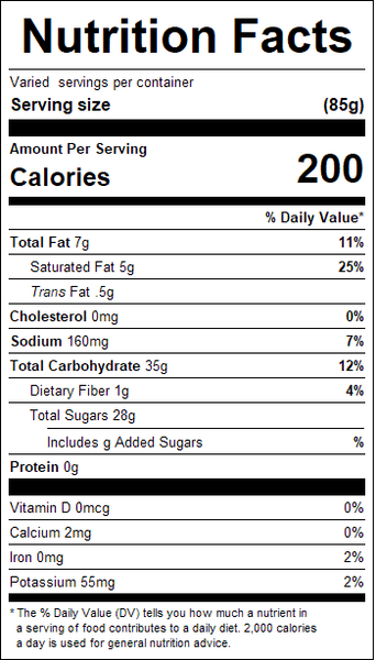"ingredients": "Water, Sugar, Coconut (Sodium Metabisulfite), Corn Syrup, Modified Food Starch (Corn). Contains 2% Or Less Of Each Of The FollowVegetable Shortening (Palm Oil), Salt, Titanium Dioxide (Color), Natural And Artificial Flavors, Sorbic Acid, Hydrochloric Acid.<br /><br />Made with Bioengineered Ingredient(s).",
