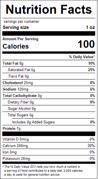 "ingredients": "Pasteurized Part Skim Milk, Salt, Enzymes, Cheese Cultures, and Annatto Coloring.",