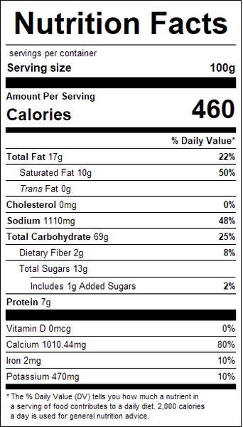 "ingredients": "Wheat Flour, Palm Oil, Dairy Product Solids, Maltodextrin, Modified Cornstarch; Less than 2% of: Salt, Tomato Powder, Leavening (baking soda, sodium acid pyrophosphate), Bakers and Cheddar Cheese Blend (milk, cheese cultures, salt, enzymes), Dextrose, Soy Lecithin, Buttermilk, Natural and Artificial Flavors, Onion Powder, Spices, Garlic Powder, Lactic Acid, Whey, Citric Acid, Colors (Yellow 5 Lake, Yellow 6 Lake, Red 40 Lake, Blue 1 Lake), Whey Protein Concentrate, Malic Acid, Sugar, Disodium Inosinate, Disodium Guanylate, Wheat, Soybeans, Paprika Extract.Contains milk, wheat and soy.<br /><br />Made with Bioengineered Ingredient(s).",
