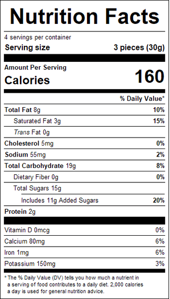 "ingredients": "White Chocolate with Cookies & Cream: Sugar, Vegetable Oil, Shortening (canola, sunflower, palm oils), Wheat Flour, Cocoa Butter, Whey, Dry Whole Milk, Nonfat Dry Milk, Cocoa Powder, Hydrogenated Vegetable Oil (palm, palm kernel oils), Emulsifier (sunflower lecithin, soy lecithin), Wheat Starch, Artificial Flavor, Salt.Contains wheat, milk, soy.May contain tree nuts, coconut, peanut.",