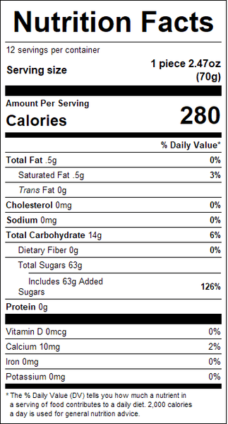 "ingredients": "Sugar, Corn starch, Glucose Syrup, Citric Acid, Malt Dextrin, Magnesium Stearate, Artificial Flavor, Artificial Color (FD&C Blue #1, Red #40, Yellow #5, Yellow #6).",