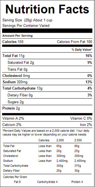 Crunchy Cheese Curls have a balanced flavor of cheese and toasted corn. This snack is full of delicious cheddar flavor, finger licking and will leave your stomach full without staining your hands that classic orange color.