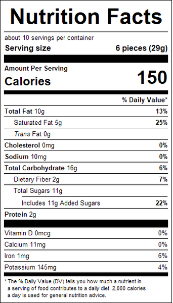 Crunchy cashews covered in rich dark chocolate are an irresistible treat! Retail ready items come with 12 prepacked containers per case - ready to display and sell.
