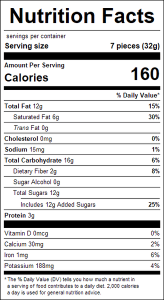"ingredients": "Dark Chocolate (Sugar, Chocolate Liquor, Cocoa Butter, Chocolate Liquor Processed With Alkali, Butterfat, Soy Lecithin [An Emulsifier], Natural Vanilla Flavor, Salt), Almonds, Coconut, Water, Gum Arabic, Modified Starch (Tapioca), Natural Coconut Flavor (Soybean Oil, Natural Flavor), Confectioners Glaze, Coconut Oil, Canola Oil.<br /><br />Contains Milk, Soy, Tree Nuts (Almonds, Coconut).<br /><br />Manufactured In A Plant That Processes Peanuts, Tree Nuts, Soy, Wheat (Gluten), Eggs And Dairy Products.",