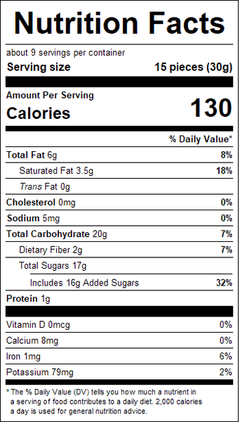 Sweet, dried cranberries covered in rich dark chocolate make this a unique bite-sized treat. Try adding a handful of these tasty tidbits to your favorite trail mix for an extra sweet snack.
