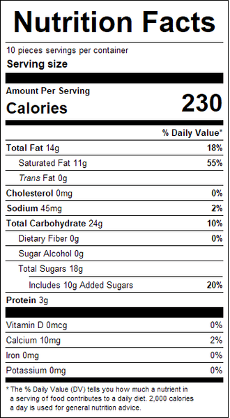 "ingredients": "Dark Chocolate (Sugar, Chocolate Liquor, Cocoa Butter, Milk Fat, Lecithin [Soy], And Vanilla)<br /><br />Nonpariels (Sugar, Cornstarch, Confectioner'S Glaze, Fd&C Yellow #5, Fd&C Red #3, Fd&C Blue #1, Carnauba Wax, Fd&C Red #40, Fd&C Yellow #6, Fd&C Blue #2.<br /><br />Contains: Milk And Soy.",