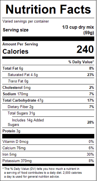 "recipe": "Mixing Instructions:<br /><br />Use ⅓ cup mix per<br />8 oz. of hot (not boiling)<br />water. Stir well and enjoy.",