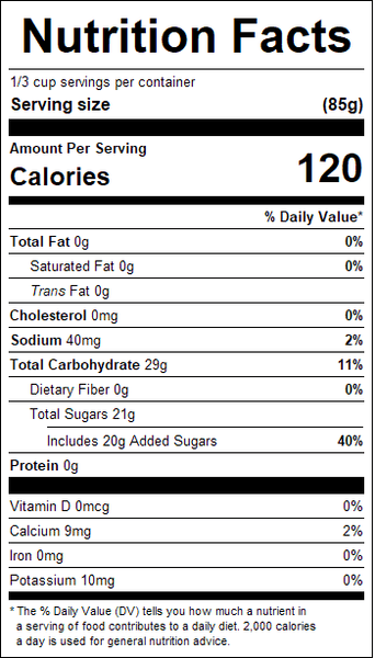 "ingredients": "Cherries, High Fructose Corn Syrup, Water, Modified Food Starch. Contains Less Than 2% Of: Artificial Flavor, Calcium Gluconate, Citric Acid, Color Added (Red 40), Potassium Sorbate And Sodium Benzoate (Preservatives).",