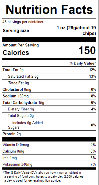 "ingredients": "Potatoes, Vegetable Oil (contains one or more of the following: cottonseed, corn, sunflower, soybean), Sea Salt.",