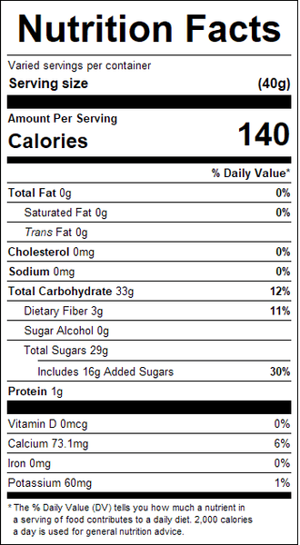 "ingredients": "Blueberries, Cane Sugar, Expeller Pressed (High Oleic) Sunflower Oil.",