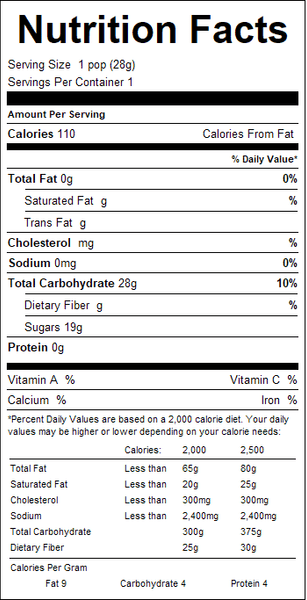 "ingredients": "Sugar, Corn Syrup, Natural and/or Artificial Flavors, Citric Acid and/or Malic Acid, Artificial Colors in addition to one or more of the following: Blue 1, Blue 2, Blue 2 Lake, Red 3, Red 40, Red 40 Lake, Yellow 5, Yellow 6, Yellow 6 Lake.",