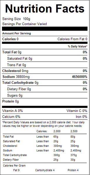 "ingredients": "Salt and less than 2% silicon dioxide added.",