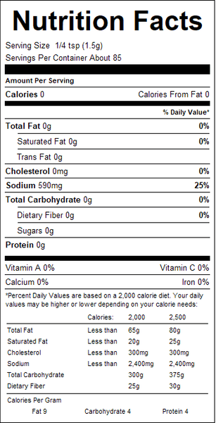 "ingredients": "Salt, Tricalcium Phosphate added as Anticaking Agent.",