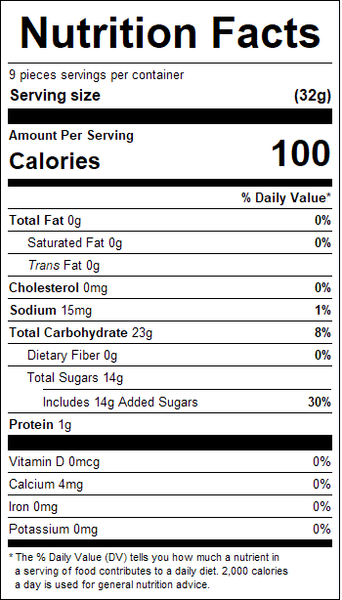 "ingredients": "Corn Syrup (From Corn), Sugar (From Beets), Water, Gelatin, Citric Acid, Artificial Flavors, Pectin (Derived From Fruit), Vegetable Oil (Coconut, Canola) And Carnauba Leaf Wax (To Prevent Sticking), Titanium Dioxide (Color), Fd&C Red #40, Fd&C Blue #1<br /><br />* Red #40 - E129 & Blue #1 - E133<br />**Coconut Oil Is Highly Refined And Is Not Considered An Allergen.<br /><br />Product Is Free Of The Top 8 Allergens: Milk, Soy, Wheat, Egg, Peanuts, Tree Nuts, Fish, And Shellfish",