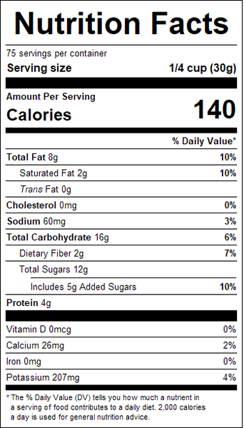 "ingredients": "Roasted and Salted Peanuts (peanuts, canola oil and salt), Raisins (raisins, sunflower oil), M&M's® Milk Chocolate Candies (milk chocolate [sugar, chocolate, skim milk, cocoa butter, lactose, milkfat, soy lecithin, salt, natural flavor], sugar, cornstarch; less than 1% of: corn syrup, dextrin, colors [includes blue 1 lake, red 40, red 40 lake, yellow 6 lake, blue 1, yellow 6, yellow 5, yellow 5 lake, blue 2 lake, blue 2], carnauba wax, gum acacia).<br />Contains Milk, Peanut, Soy.<br />Processed on equipment that also processes: Crustacean Shellfish, Egg, Fish, Milk, Peanut, Sesame, Soy, Tree Nuts (Almond, Brazil Nut, Cashew, Coconut, Filbert (Hazelnut), Macadamia Nut, Pecan, Pine Nut, Pistachio, Walnut) and Wheat.<br /><br />Made with Bioengineered Ingredient(s).",