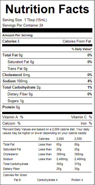 "ingredients": "Water, Apple Cider Vinegar, Sugar, Roasted Garlic, Balsamic Vinegar, Salt, Non-GMO Xanthan Gum, Spice.",