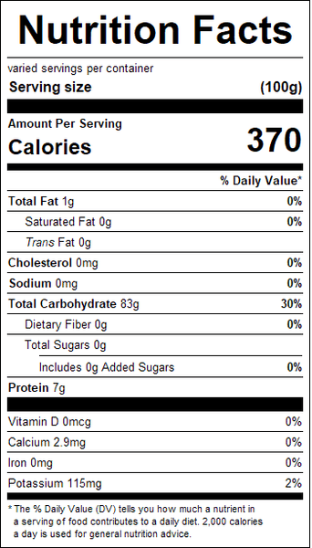 "ingredients": "White Rice.<br /><br />Gluten Free",