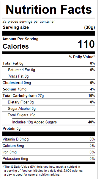 These colorfully coated licorice chews have been a candy favorite for decades! An especially delicious movie time treat, these bite sized licorice pieces have a classic licorice taste that are sure to leave both your stomach and your taste buds satisfied.