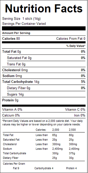 This classic flavor has a sweet grape taste that is a favorite with kids of all ages. These bold purple sticks are swirled with white stripes and have a sweet grape aroma that will make your mouth water as soon as you remove the wrapper.