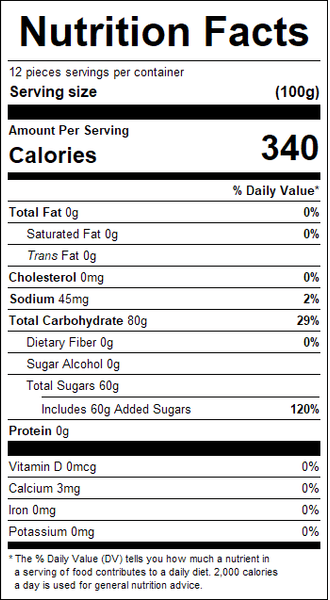 "ingredients": "Corn Syrup, Sugar, Gelatine, Modified Corn Starch, Acid: Lactic Acid; Corn Starch, Natural And Artificial Flavor, Color: Yellow 5, Yellow 6, Titanium Dioxide.",