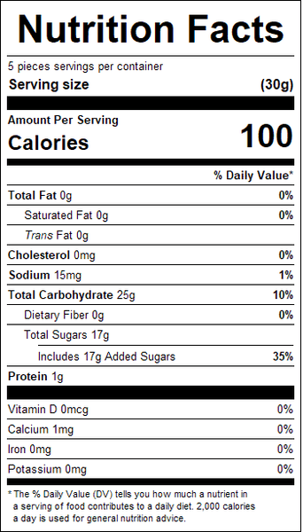 These gummies have the taste of ripe, juicy pineapple packed into a sweet, chewy candy. Fun to eat, they make a great on-the-go snack.