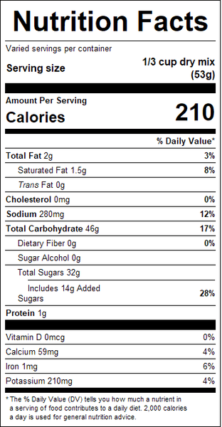 "recipe": "Mixing Instructions:<br /><br />Use ⅓ cup mix per<br />8 oz. of hot water.<br />Mix well and enjoy.",