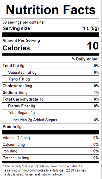"ingredients": "Distilled Vinegar and Water, #1 Mustard Seed, Sugar, Honey, Salt, Soybean Oil, Spices, Garlic Powder, Turmeric, Aquaresin of Carrot, Xanthan Gum, Paprika.",
