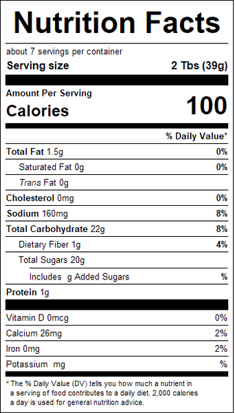 "ingredients": "Cane Sugar, Vinegar, Water, Honey, Mustard Seeds, Mustard Flour, Dark Brown Sugar, Salt, White Wine and Spices.",