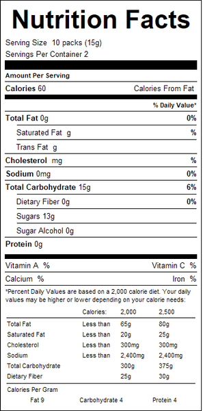 "ingredients": "Sugar, Maltose Syrup, Maltose, Malic Acid, Carbon Dioxide, Artificial Flavors, Red 40, Blue 1, Yellow 5.",