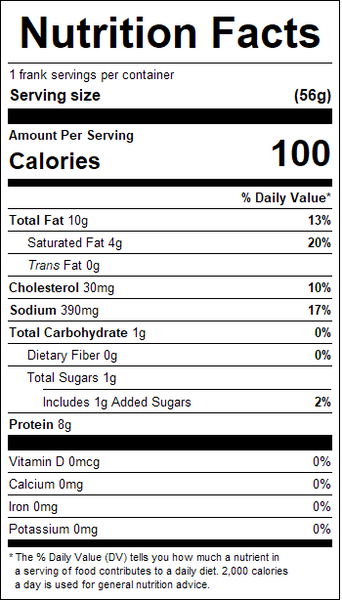 These naturally hickory wood smoked, beef franks are a tender, juicy and delicious!