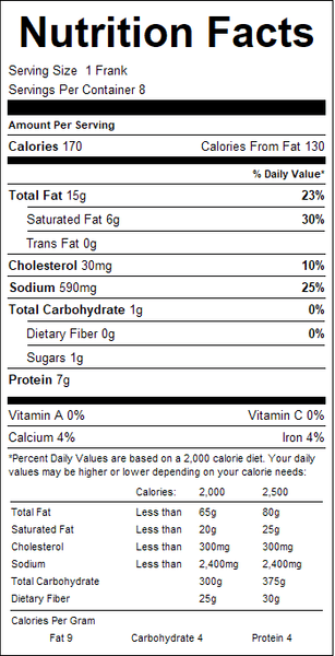 *Please look below for quantity breaks*These naturally hickory wood smoked cheese-infused pork and beef franks are tender, juicy and delicious!