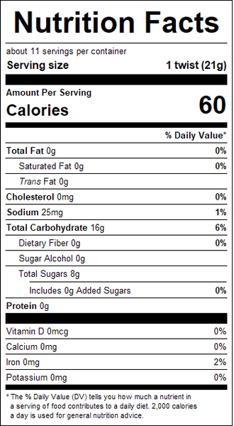 Soft and chewy, jumbo licorice twists are a classic favorite! Bright color and fruity flavor combine to make Cherry Twists an unbeatable sweet treat!
