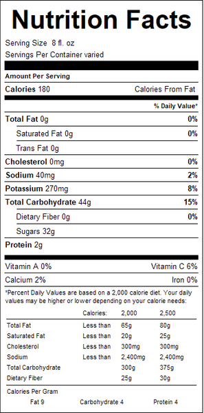 Just Black Cherry Juice has cherries galore in every bottle. More than 2 pounds of delicious fruit per 32 ounce bottle ensures that you receive plenty of the healthy antioxidants present in black cherries.