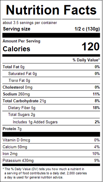 "ingredients": "Prepared Kidney Beans, Water, Sugar, Salt, Calcium Chloride (firming agent), Disodium EDTA Added to Promote Color Retention.",
