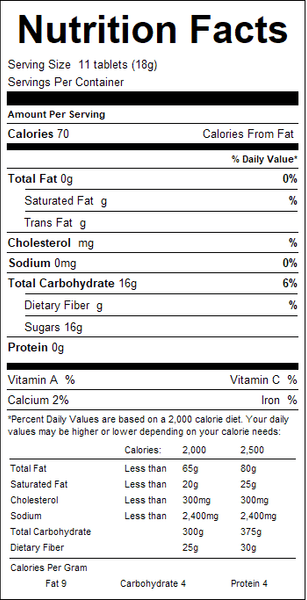 "ingredients": "Dextrose with Maltodextrin, Citric Acid, Calcium Stearate, Natural and Artificial Flavor, Color (red 40 lake, yellow 5 lake, yellow 6 lake, blue 2 lake, red 40).",