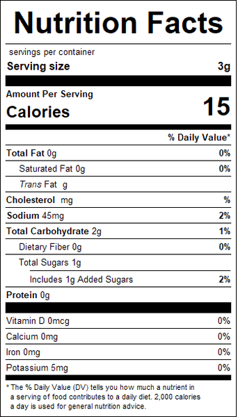 "ingredients": "Corn Syrup Solids, Maltodextrin, Dextrose, Yeast, Hydrolyzed Corn Protein, Chicken Fat (chicken fat, BHA, Propyl Gallate, Citric acid), Palm OIl, Chicken Powder (chicken meat, BHA, propyl gallate, citric), Onion Powder, Turmeric, Natural Flavor.",