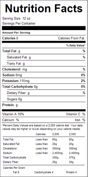 "ingredients": "Carbonated Water, Citric Acid, Potassium Citrate, Potassium Benzoate (preservative), Gum Acacia, Caffeine, Sucralose, Acesulfame Potassium, Green Tea Extract, Natural Flavor, Ester Gum, Niacinamide (B3), Calcium D-Pantothenate (B5), Pyridoxine Hydrochloride (B6), Vitamin A Palmitate, Biotin, Cyanocobalamin (B12).",