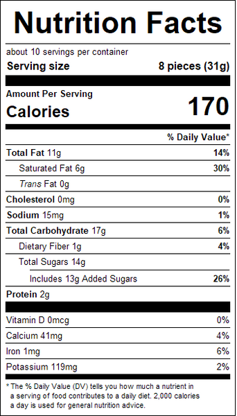 "ingredients": "Milk Chocolate Almonds (milk chocolate [sugar, cocoa butter, chocolate liquor, milk, nonfat milk, butterfat, contains 2% or less of soy lecithin (an emulsifier), salt, natural vanilla flavor], almonds, sugar, hydrogenated palm kernel oil, palm kernel oil, cocoa, whey, water, gum arabic, nonfat milk, confectioners glaze, soy lecithin [an emulsifier], natural vanilla flavor, modified starch [tapioca], vegetable oil [coconut oil, canola oil]).<br />Contains Almond, Milk, Soy.<br />Processed on equipment that also processes: Crustacean Shellfish, Egg, Fish, Milk, Peanut, Sesame, Soy, Tree Nuts (Almond, Brazil Nut, Cashew, Coconut, Filbert (Hazelnut), Macadamia Nut, Pecan, Pine Nut, Pistachio, Walnut) and Wheat.",